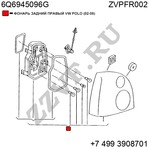 ФОНАРЬ ЗАДНИЙ ПРАВЫЙ VW POLO (02-05)