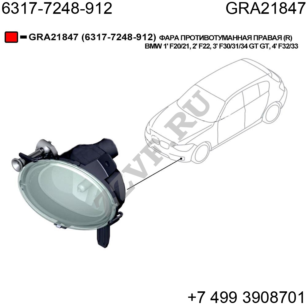 ФАРА ПРОТИВОТУМАННАЯ ПРАВАЯ (R) BMW 1' F20/21, 2' F22, 3' F30/31/34 GT GT, 4' F32/33