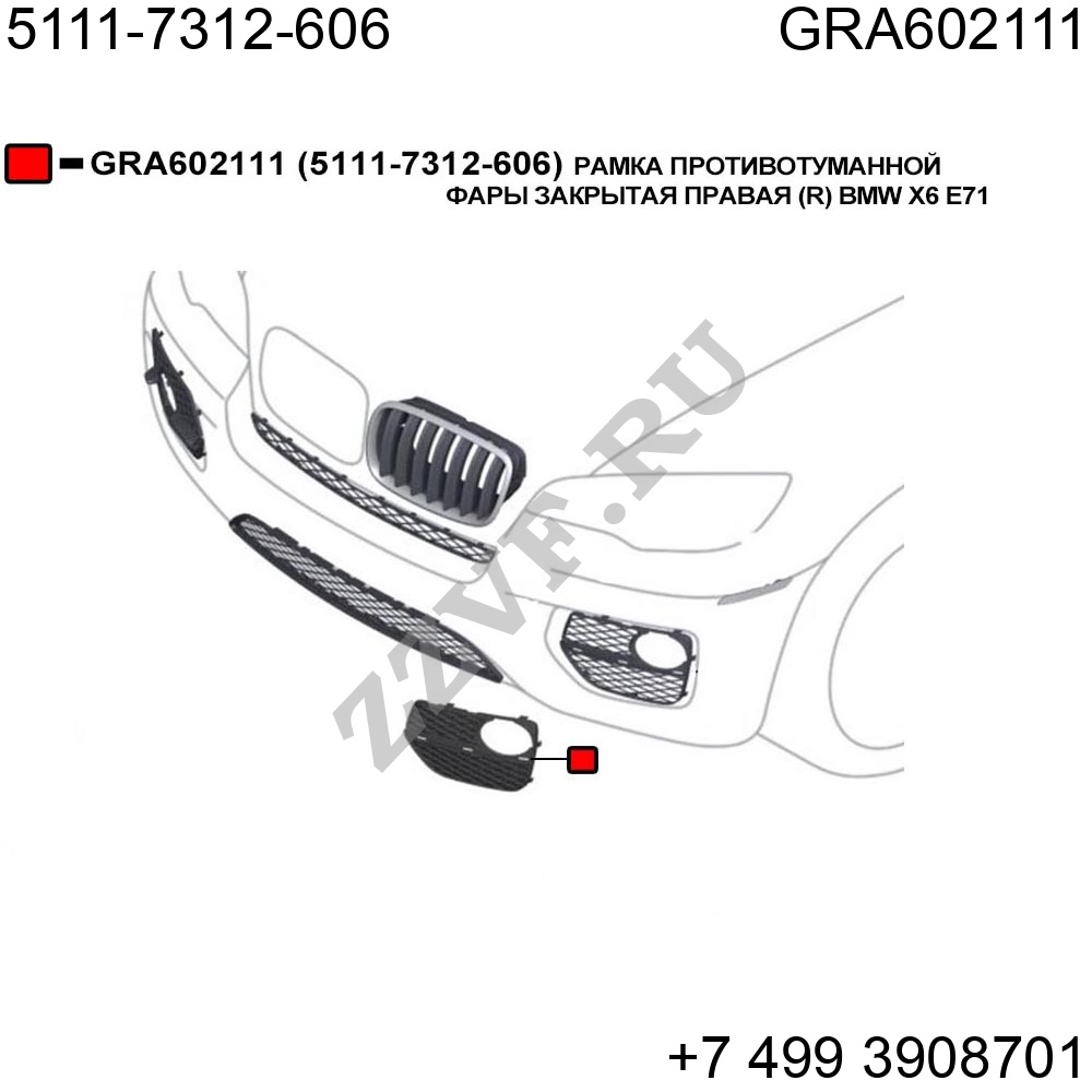 РАМКА ПРОТИВОТУМАННОЙ ФАРЫ ЗАКРЫТАЯ ПРАВАЯ (R) BMW X6 E71