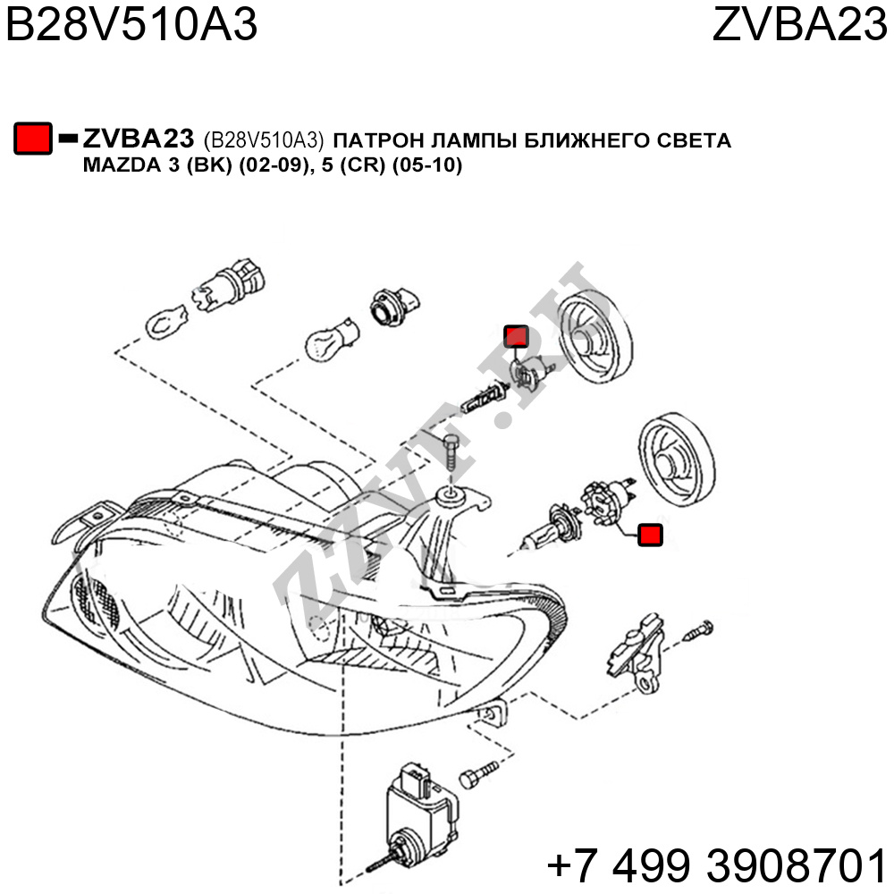 Патрон лампы ближнего света Mazda 3 (BK) (02-09), 5 (CR) (05-10)