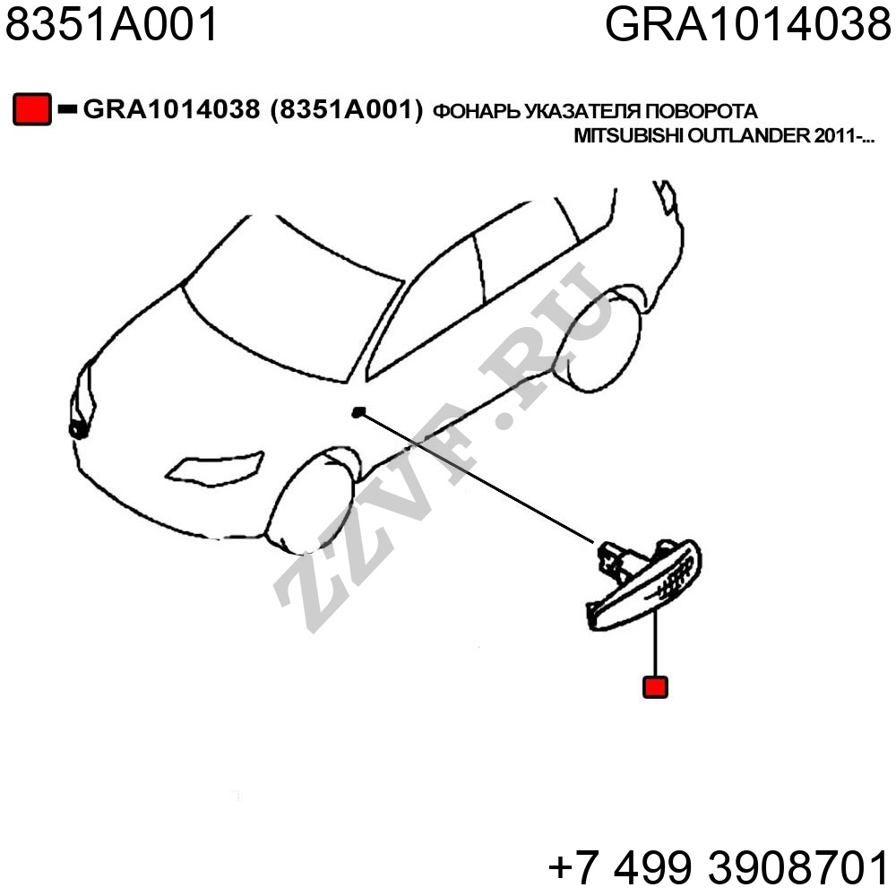 ФОНАРЬ УКАЗАТЕЛЯ ПОВОРОТА MITSUBISHI OUTLANDER 2011-...
