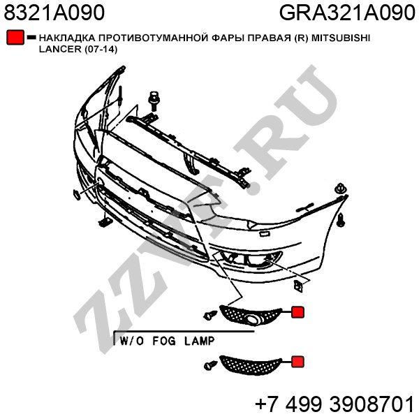 НАКЛАДКА ПРОТИВОТУМАННОЙ ФАРЫ ПРАВАЯ (R) MITSUBISHI LANCER (07-14)