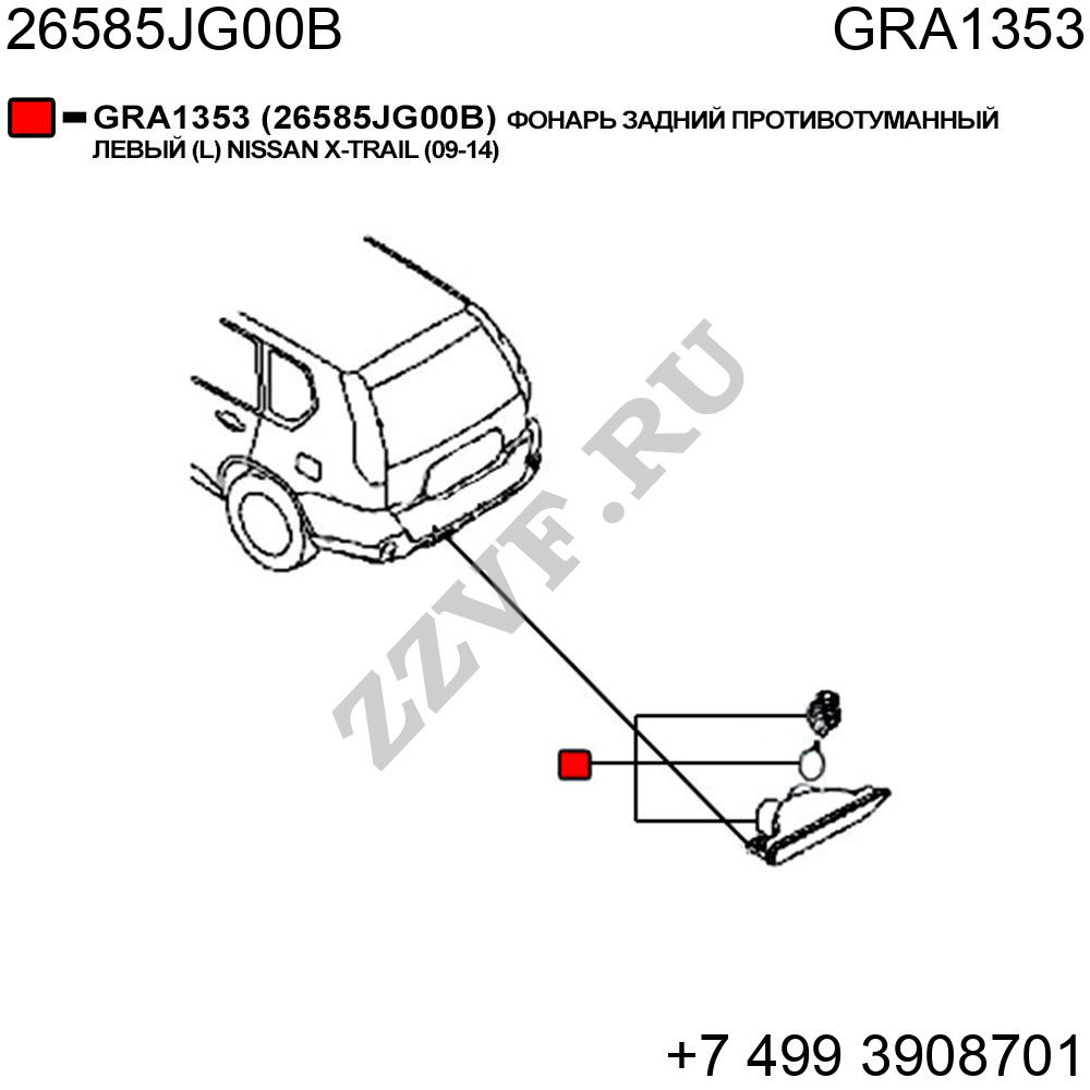 ФОНАРЬ ЗАДНИЙ ПРОТИВОТУМАННЫЙ ЛЕВЫЙ (L) NISSAN X-TRAIL (09-14)