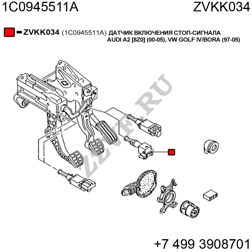 ДАТЧИК ВКЛЮЧЕНИЯ СТОП-СИГНАЛА AUDI A2 [8Z0] (00-05), VW GOLF IV/BORA (97-05)