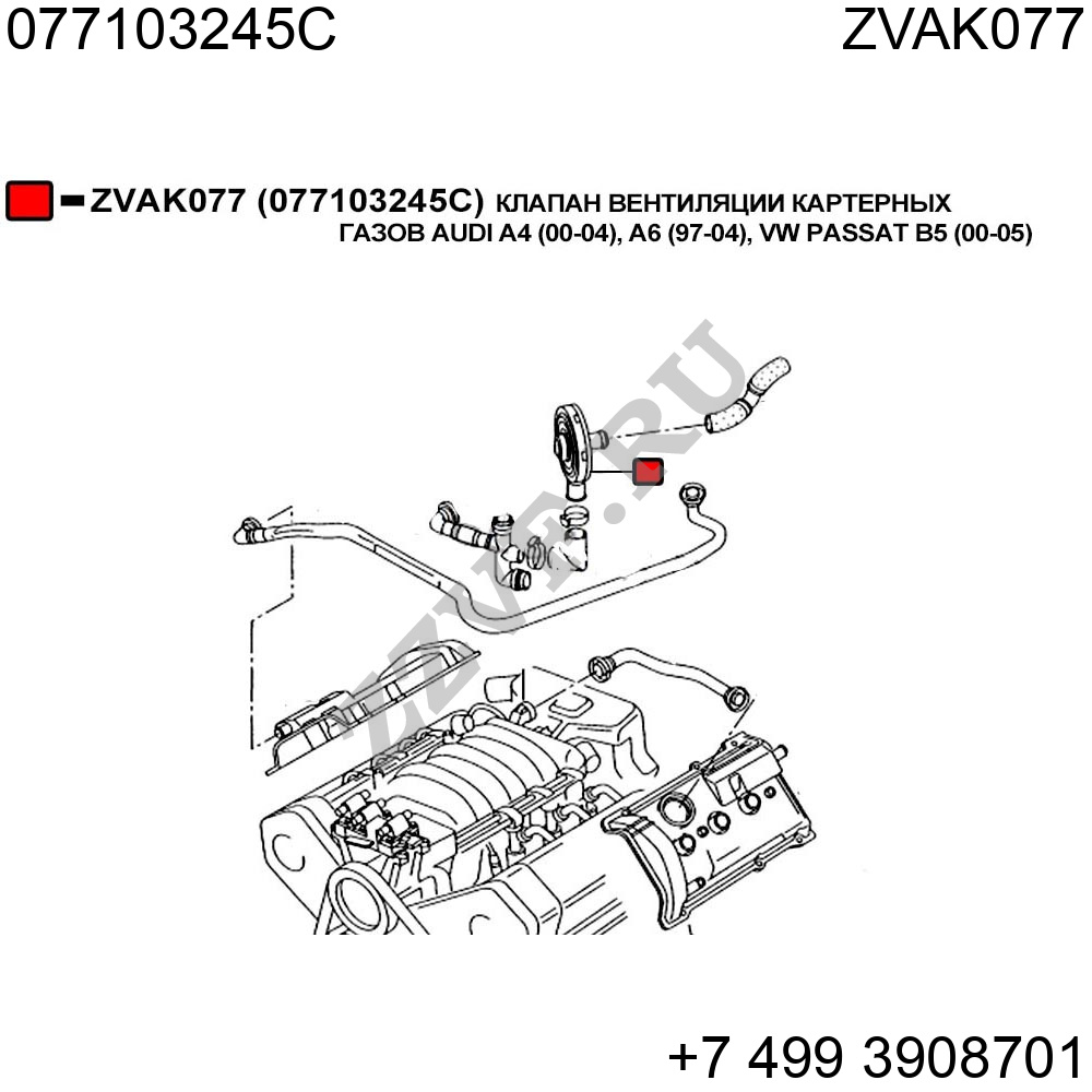Клапан вентиляции картерных газов Audi A4 (00-04), A6 (97-04), VW Passat B5 (00-05)