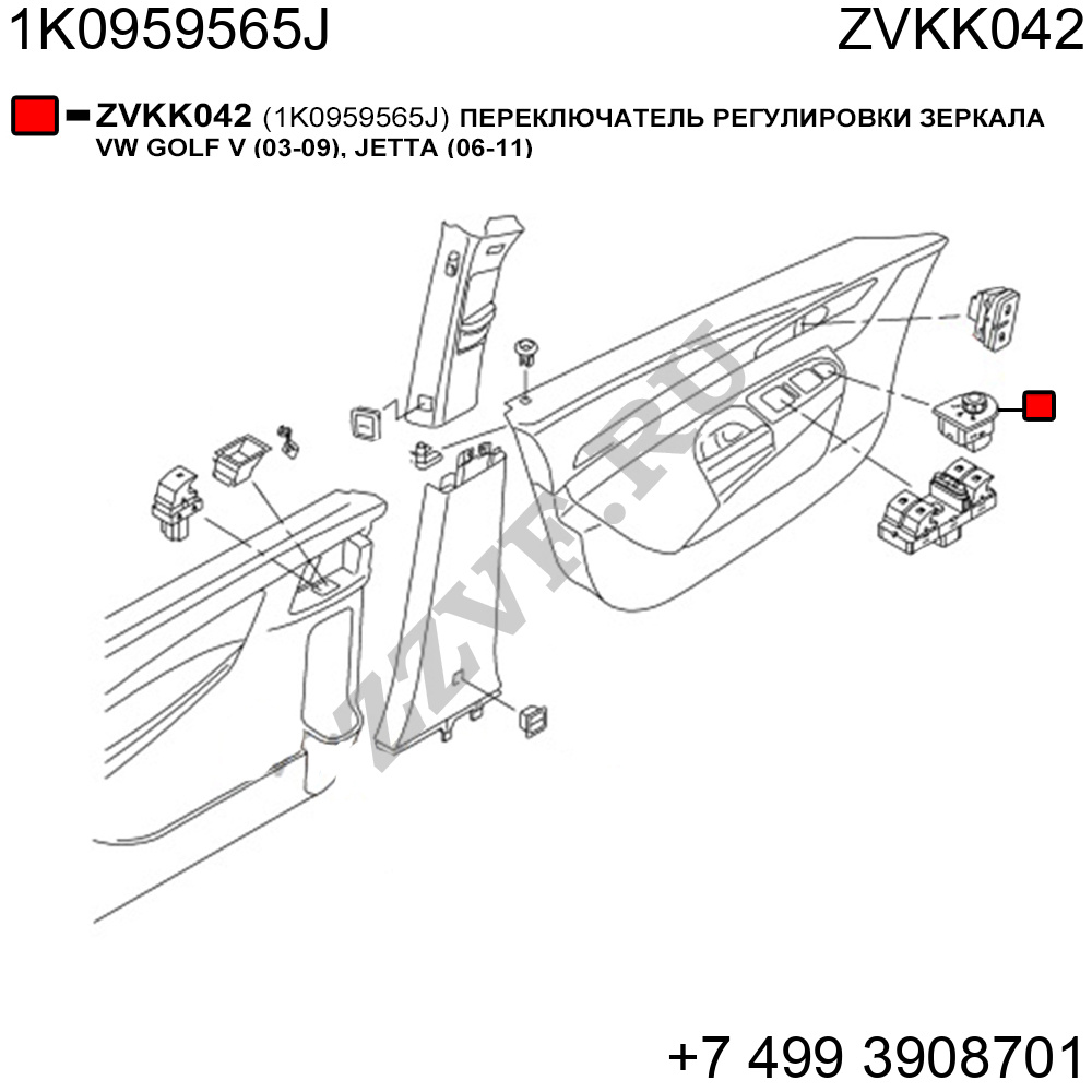 ПЕРЕКЛЮЧАТЕЛЬ РЕГУЛИРОВКИ ЗЕРКАЛА VW GOLF V (03-09), JETTA (06-11)