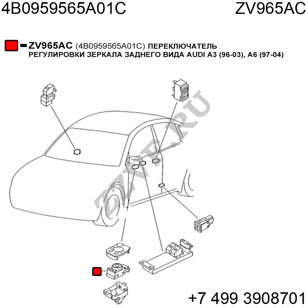 ПЕРЕКЛЮЧАТЕЛЬ РЕГУЛИРОВКИ ЗЕРКАЛА ЗАДНЕГО ВИДА AUDI A3 (96-03), A6 (97-04)