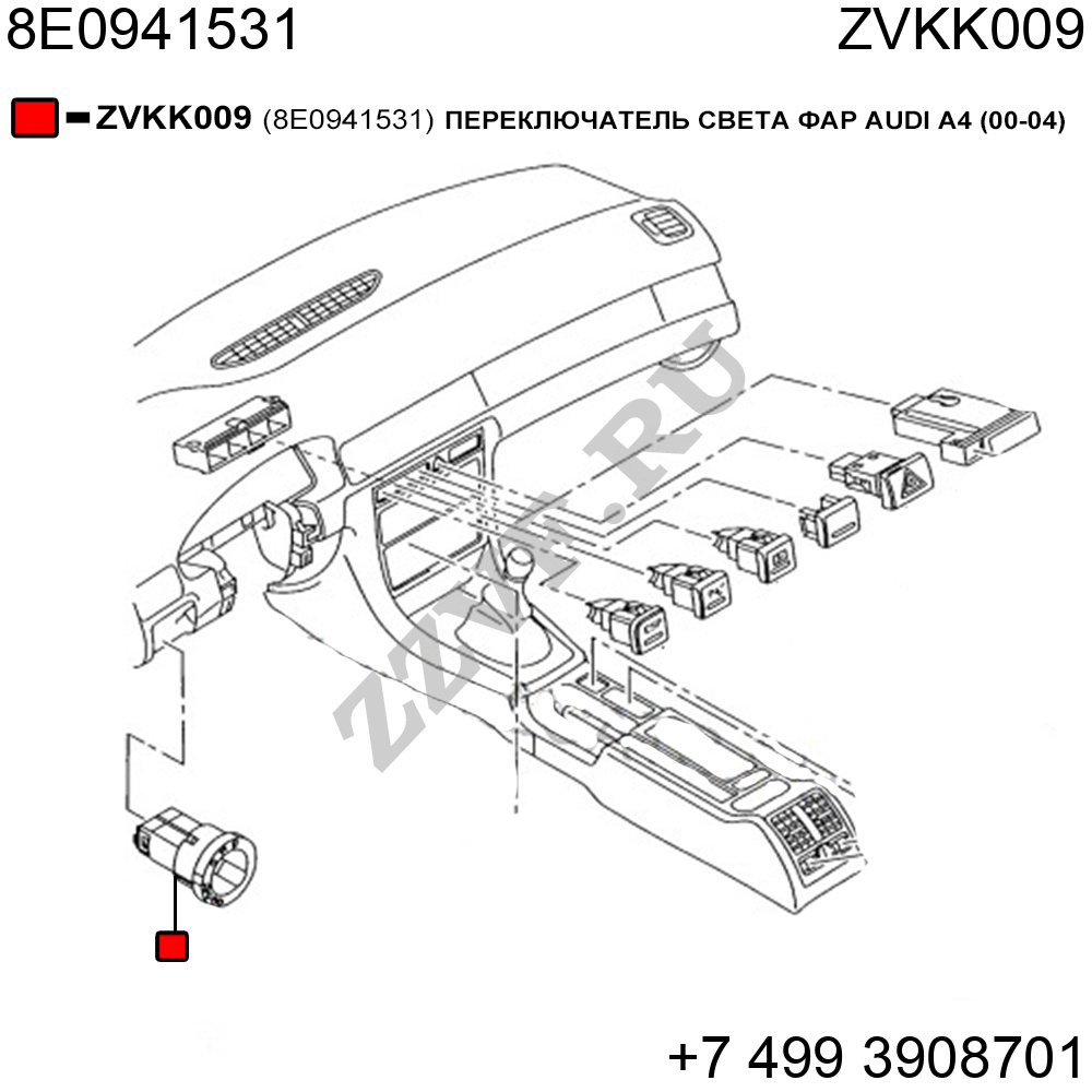ПЕРЕКЛЮЧАТЕЛЬ СВЕТА ФАР AUDI A4 (00-04)