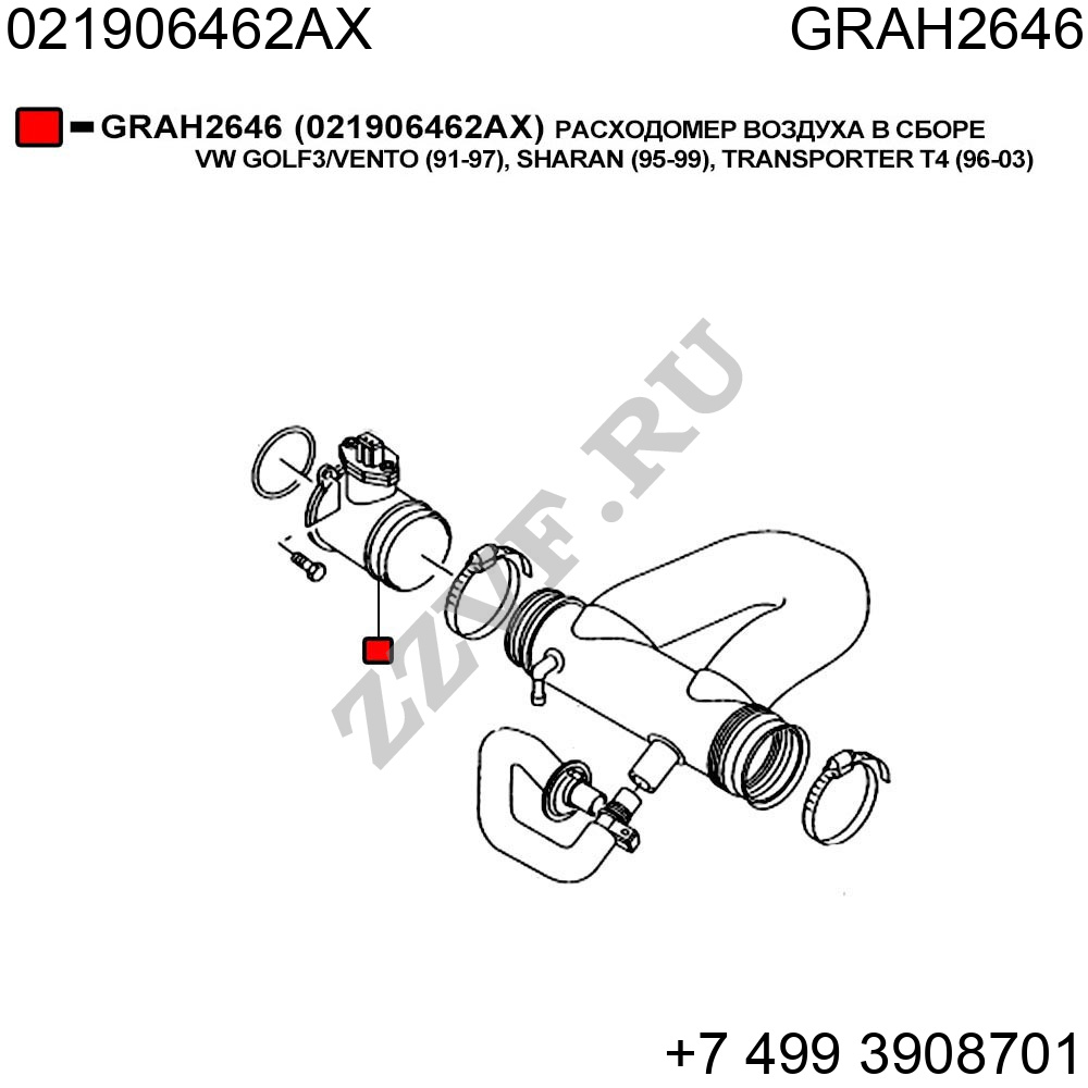 РАСХОДОМЕР ВОЗДУХА В СБОРЕ VW GOLF3/VENTO (91-97), SHARAN (95-99), TRANSPORTER T4 (96-03)